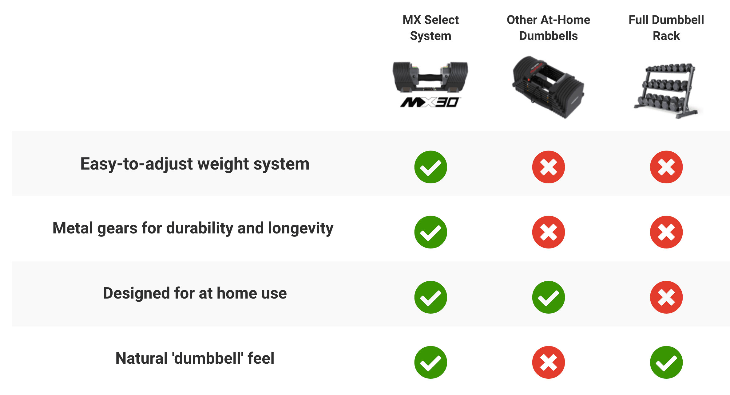 Two small gripes would be that the weights are not symmetrically shaped (just takes getting used to) and the selector is numbered 1-10 which is indexed to a weight. Although I'm starting to remember the numbers I still like to double check before I begin each exercise.